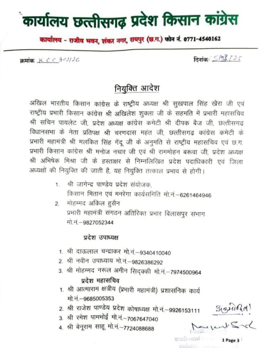 किसान कांग्रेस के पूनम तिग्गा प्रदेश सचिव बने