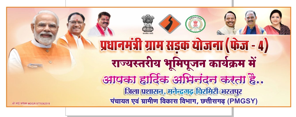मनेन्द्रगढ़-चिरमिरी-भरतपुर (MCB) जिले सहित पूरे राज्य में ग्रामीण विकास को नई दिशा देने के उद्देश्य से प्रधानमंत्री ग्राम सड़क योजना (PMGSY) फेज–04 के अंतर्गत सड़कों के निर्माण कार्यों का शिलान्यास एवं शुभारंभ कार्यक्रम 17 अप्रैल 2026 को आयोजित किया जाएगा। इस योजना के तहत राज्य में कुल 774 सड़कों को स्वीकृति मिली है, जिनकी कुल लंबाई 2,426.875 किलोमीटर है। इन कार्यों के लिए 2,225.44 करोड़ रुपये की राशि स्वीकृत की गई है, जिससे