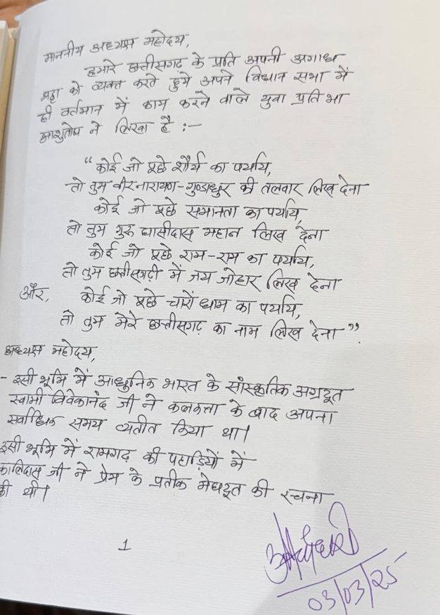 छत्तीसगढ़ में पहली बार हस्तलिखित बजट पेश वित्त मंत्री ओपी चौधरी ने किए हस्ताक्षर 100 पृष्ठों में वित्त मंत्री ने हाथ से लिखा ऐतिहासिक बजट