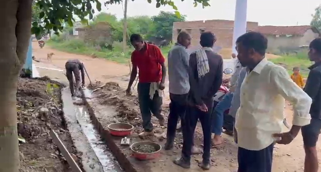 ग्राम हरिनभट्ठा में बनने वाले नाली निर्माण का जनपद सदस्य चंद्रप्रकाश टोंडे ने लिया जयजा