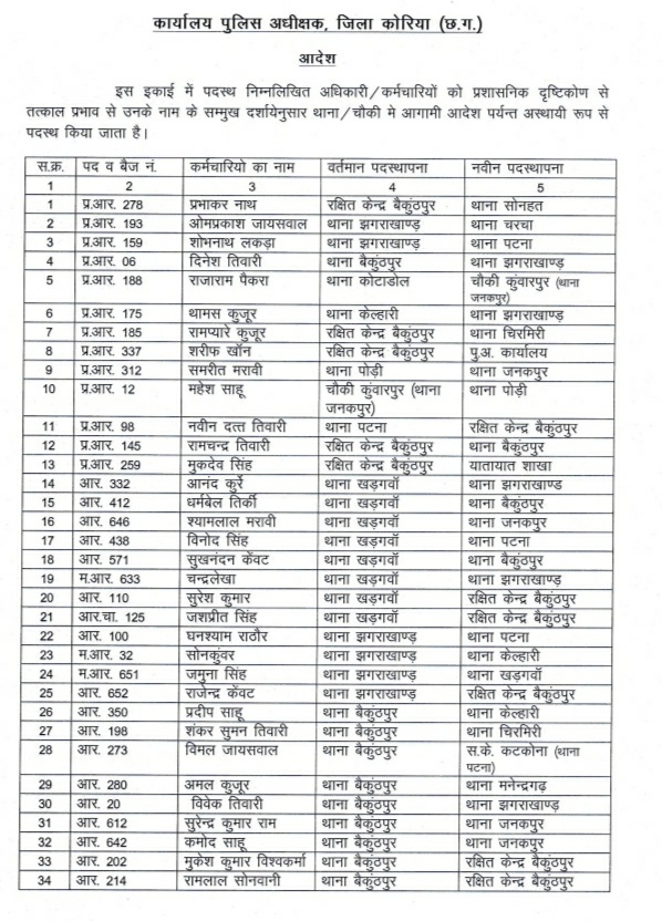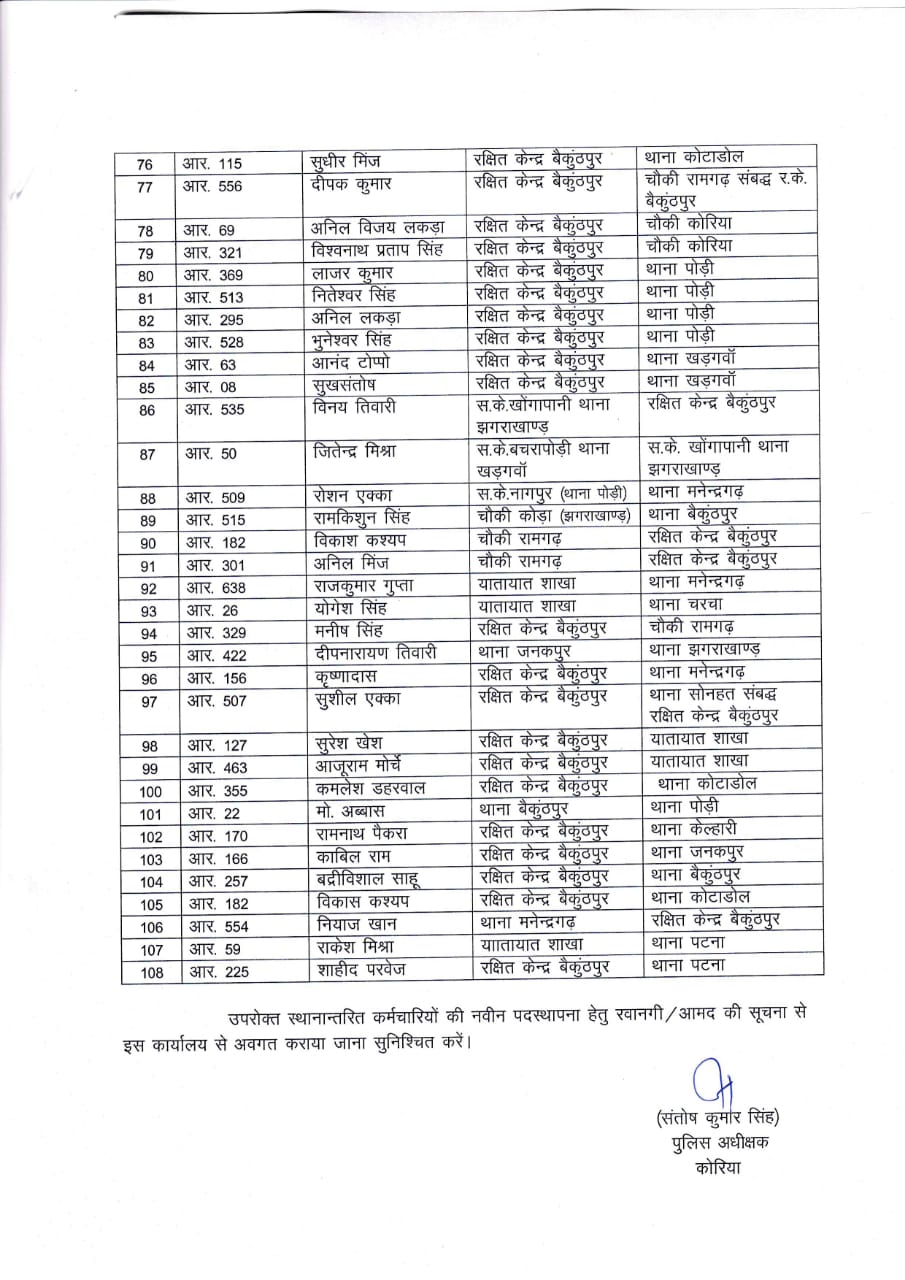 पुलिस अधीक्षक ने जारी की स्थानंतरण सूची, 108 कर्मचारी इधर से उधर
