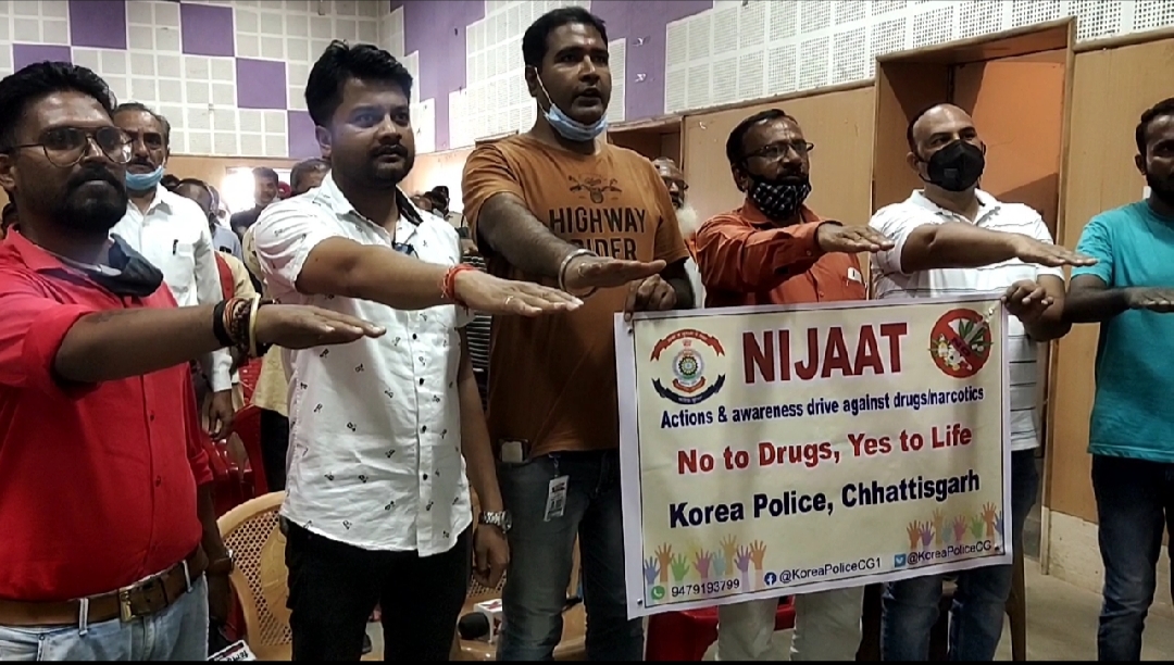 निजात अभियान के तहत नशा मुक्त कोरिया बनाने का संकल्प दिलाया उप पुलिस अधीक्षक कविता ठाकुर , तहसीलदार मनमोहन सिंह ने