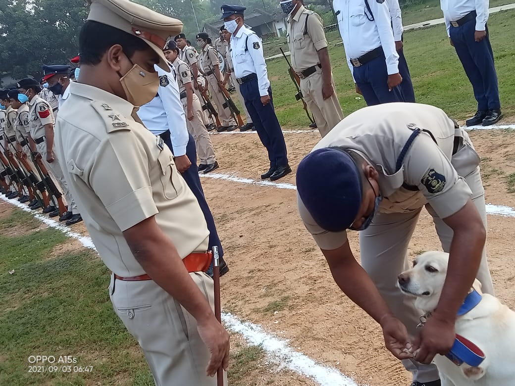 पुलिस लाईन ग्राउंड में आज दिनांक 03.09.21 दिन शुक्रवार को जनरल परेड में पुलिस अधीक्षक संतोष सिंह को रक्षित निरीक्षक हेमन्त टोप्पो ने परेड की सलामी दी।
