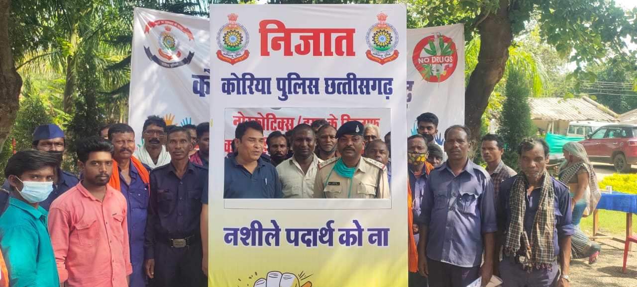 कोरिया पुलिस द्वारा चलाये जा रहे नशा मुक्ति अभियान इशी कड़ी चिरिमिरी हल्दीबाड़ी में आज दिनांक 21 को एन सी एच क्लब में जनजागरूकता अभियान के तहत कार्यक्रम रखा गया था जिसमे एसपी संतोष सिंह ने लोगो को नशा के विरुद्ध सपत दिलाया इस कार्यक्रम में छेत्र के लोगो ने बड़ चढ़ कर हिससा लिया जिसमे नवजवान सहित, महिलाएं एवं सभी समुदाय के लोग उपस्थित थे लोगो ने अपने अपने विचार वी रखे।