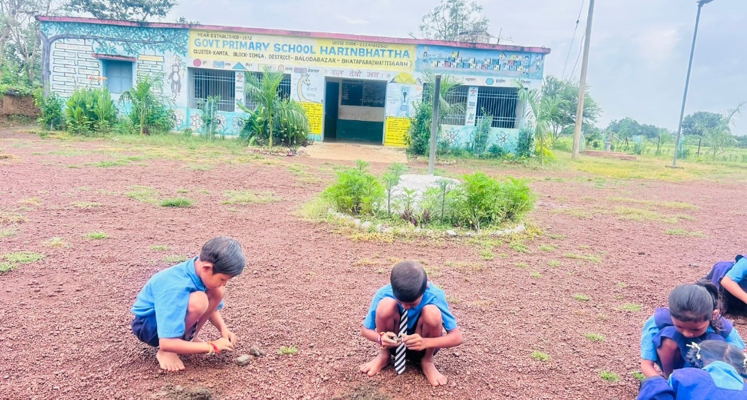 हरीनभट्ठा के शासकीय प्राथमिक शाला के बच्चे पोला पर्व पर मिट्टी से बनाए विविध सामाग्री