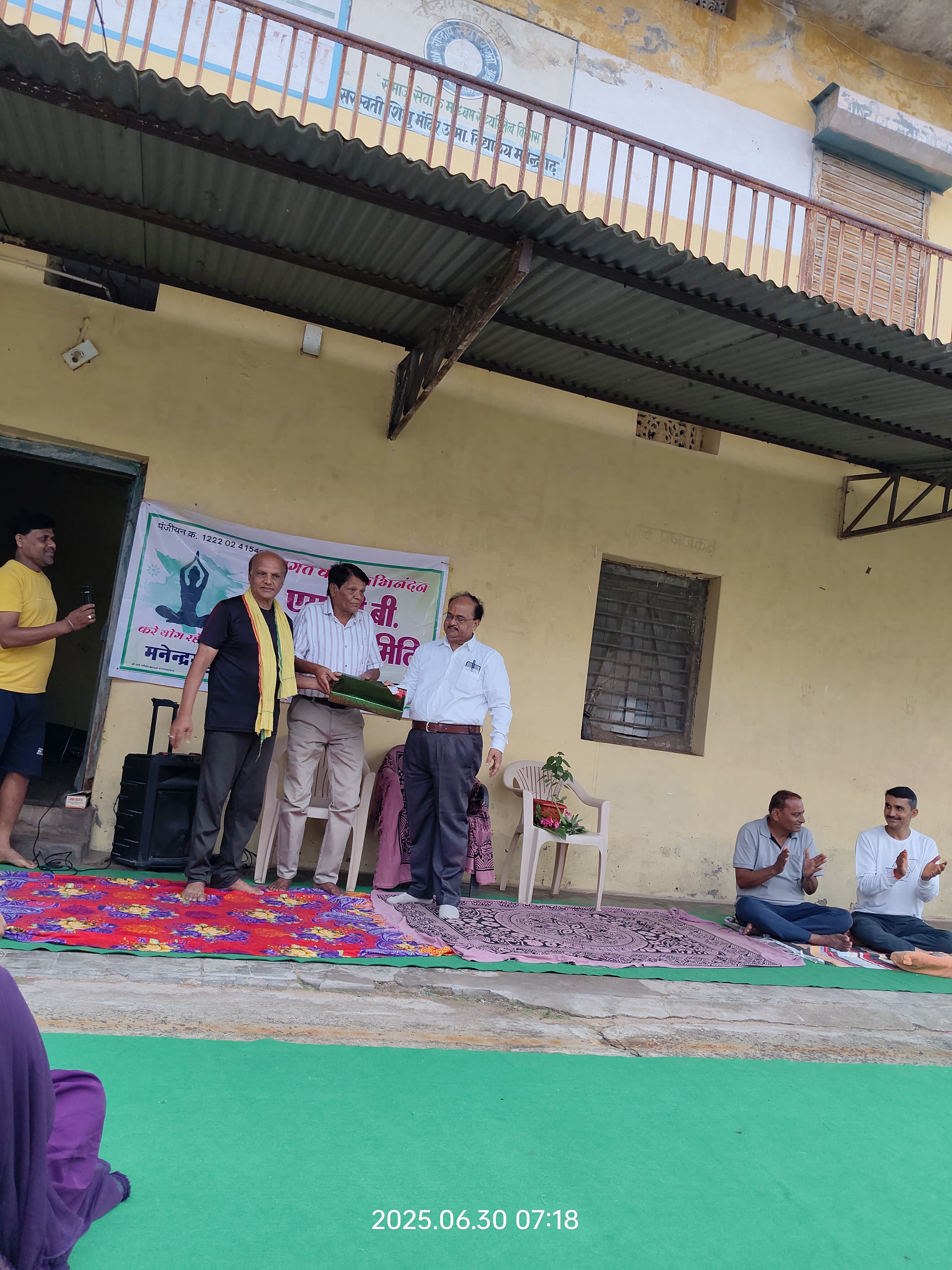 नई ऊंचाइयां प्रदान की। आमंत्रित अतिथियों का स्वागत हरित योग की मूल भावना के तहत डॉ संदीप चंदेल, एवं समाज सेविका श्रीमती रूपा पोद्दार ने हरे भरे गमले भेंट करके किया । अपने उद्बोधन में समाज कल्याण विभाग के संचालक रमेश कुमार सिन्हा ने योग की व्याख्या करते हुए कहा कि आज मैं ऐसे योग मंच पर खड़ा हूं जो निरंतर 20 वर्षों से बगैर किसी हताशा और निराशा के मनेद्रगढ़ नगर में संचालित है उन्होंने योग के संबंध में इस नारे को बुलंद किया-" न कोई सरहद , न कोई धर्म, हर कोई समझ रहा योग का मर्म -"। उन्होंने योग को सांसों के साथ संवाद की कला बताते हुए कहा कि -योग ध्यान और मौन का माध्यम है। योग समाधि की राह दिखाता है और योग देश की सीमाओं से परे है। सुप्रसिद्ध साहित्यकार एवं कार्टूनिस्ट जगदीश पाठक ने इस बात की प्रसन्नता व्यक्त किया कि लोग अपने स्वास्थ्य के प्रति जागरूक हैं और प्रतिदिन अपने दैनिक दिनचर्या में योग को समाहित किए हुए हैं अंत में उन्होंने अपने चुटीली कविताओं से वातावरण को प्रफुल्लित कर दिया। कार्यक्रम में ओमप्रकाश पांडे, चंद्रेश परिहार ,भैरव केसरवानी ,रामसेवक विश्वकर्मा, जगदंबा अग्रवाल, राकेश अग्रवाल, पिंकी रैना नीलम दुबे ,सुनीता मिश्रा, कविता मंगतानी ,प्रियंका अग्रवाल, आर डी दिवान ,संध्या साहू, आदि योग साधक उपस्थित थे। कार्यक्रम का संचालन सतीश उपाध्याय एवं जसवीर सिंह रैना ने किया।