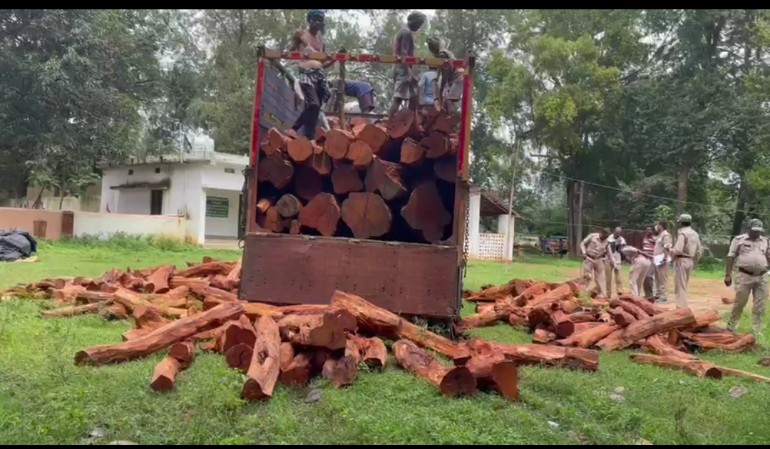 अवैध तस्करी करते कत्था लकड़ी से भरे ट्रक को वन विभाग ने अपने गब्जे मे लिया