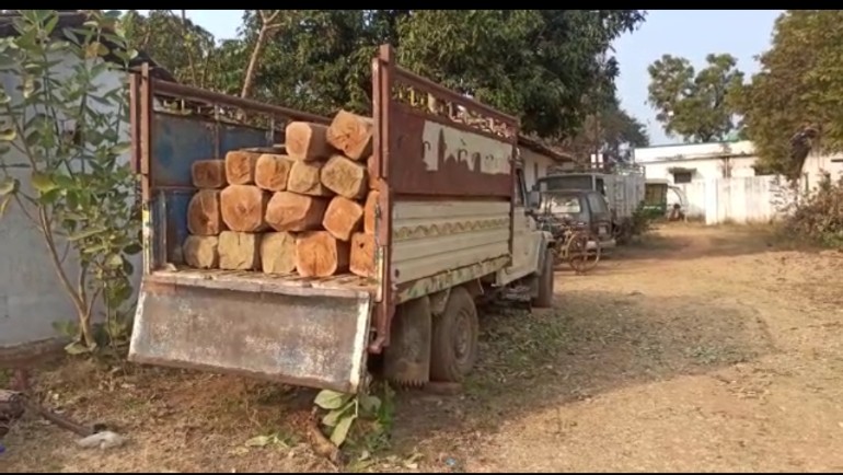 वन विभाग की टीम की बड़ी कार्यवाही इमारती लकड़ी से भरे पिकअप को अवैध लकड़ी तस्करी करते हुए पकड़ा।