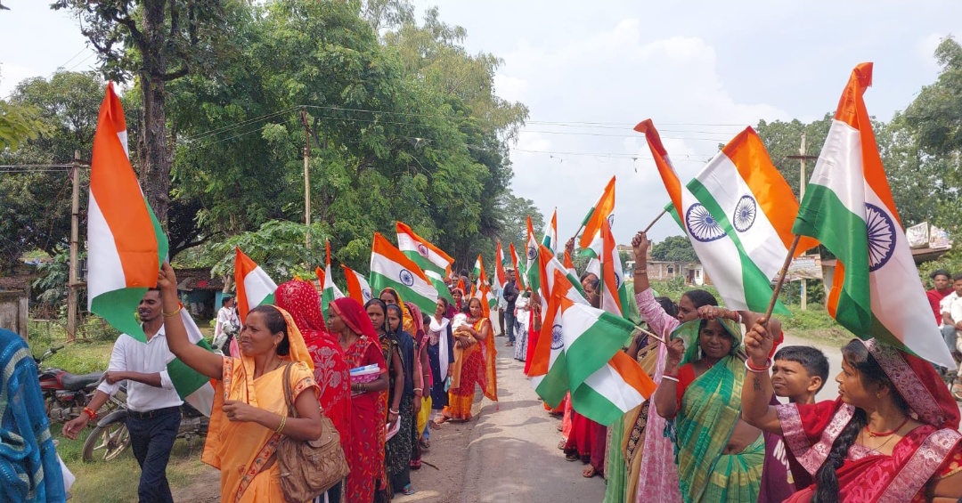 ग्राम पंचायत आरागाही से ग्राम पंचायत ताम्बेश्वरनगर तक निकली गई तिरंगा यात्रा