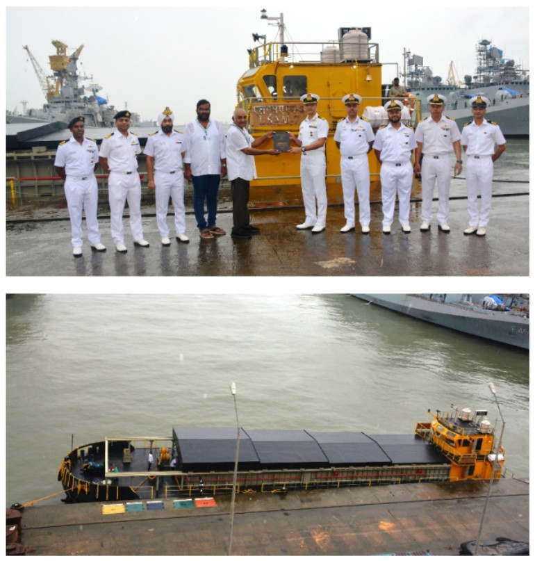 पहला एमसीए बार्ज एलएसएएम 7 यार्ड 75 मुंबई में आईएनएस तूणीर पर तैनात किया गया