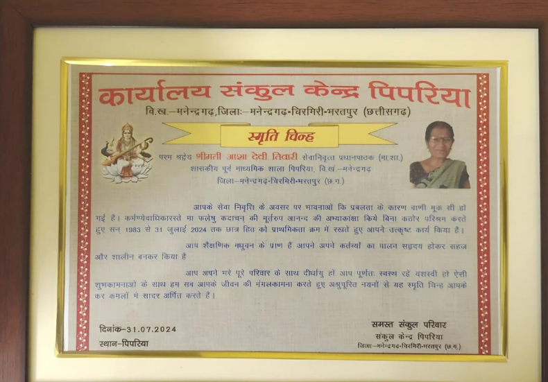 पिपरिया संकुल के तीन शिक्षकों को सम्मान पत्र और शाल श्रीफल देकर दी गयी विदाई