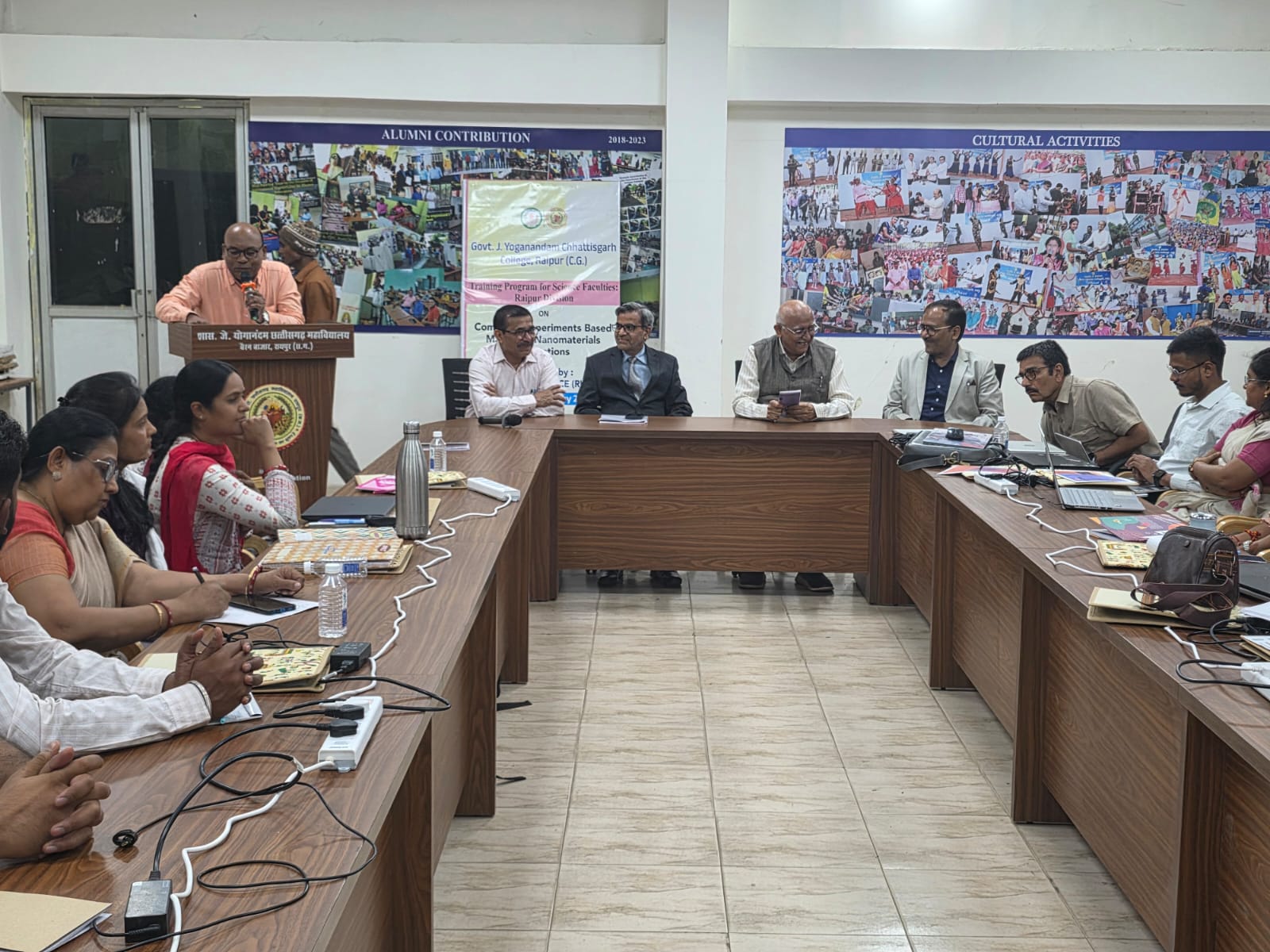 रायपुर, 23 फरवरी 2026।शासकीय जे. योगानंदम छत्तीसगढ़ महाविद्यालय, रायपुर में रूसा 2.0 (प्रिपरेटरी ग्रांट) के अंतर्गत रायपुर संभाग के विज्ञान संकाय के प्राध्यापकों हेतु “कम्प्यूटर आधारित मटेरियल/नैनोमटेरियल नवाचार” विषय पर आयोजित एक सप्ताह का प्रशिक्षण कार्यक्रम का शुभारंभ उत्साहपूर्वक हुआ। आयोजन समिति सदस्य डॉ. गोवर्धन व्यास ने बताया कि यह प्रशिक्षण 23 से 28 फरवरी 2026 तक आयोजित किया जा रहा है। कार्यक्रम का आयोजन उच्च शिक्षा विभाग, छत्तीसगढ़ द्वारा राज्य परियोजना कार्यालय, रूसा, छत्तीसगढ़ के सहयोग से किया जा रहा है। रायपुर संभाग के विभिन्न महाविद्यालयों से भौतिकी, रसायन, गणित एवं अन्य विज्ञान विषयों के प्राध्यापक इस प्रशिक्षण में सहभागिता कर रहे हैं।