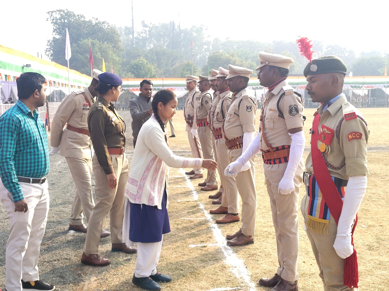 गणतंत्र दिवस की अंतिम रिहर्सल के दौरान जिले की 10वीं टॉपर वंदना सिंह मुख्य अतिथि के रूप में रहीं मौजूद