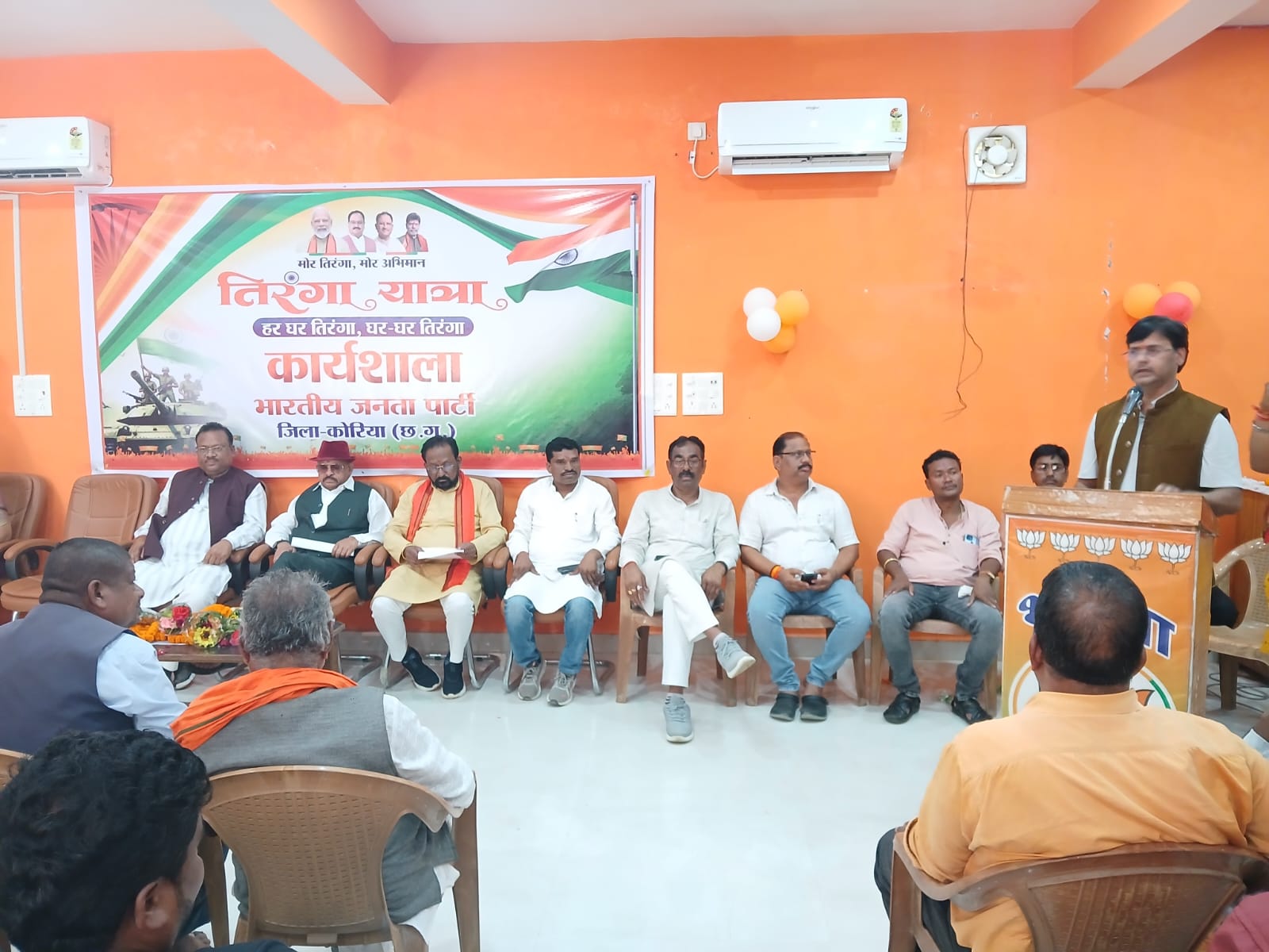 बैकुण्ठपुर - देश व्यापी तिरंगा यात्रा को संदर्भ में भाजपा जिला कार्यालय छिंदडांड़ बैकुण्ठपुर में जिला कार्यशाला में हर घर तिरंगा यात्रा को सफल बनाने की रणनीति तय की गई। बैठक में मुख्य रूप मे प्रभारी रामकिसुन सिंह, विधायक भईयालाल राजवाड़े, जिलाध्यक्ष देवेन्द्र तिवारी, संयोजक कृष्णबिहारी जायसवाल, पूर्व जिला उपाध्यक्ष शैलेष शिवहरे, जिला उपाध्यक्ष अशोक जायसवाल, बसंत राय, राजेश सिंह, अनिल साहू, रविशंकर राजवाड़े, चुन्नी पैकरा, जिला महामंत्री पंकज गुप्ता, कपिल जायसवाल, जिला पंचायत अध्यक्ष मोहित पैकरा, जिला पंचायत उपाध्यक्ष वंदना राजवाड़े, जनपद अध्यक्ष आशादेवी सोनपाकर, नपाध्यक्ष अरूण जायसवाल, जिला मंत्री शिव कुमारी सोनपाकर, ईश्वर राजवाड़े, शारदा गुप्ता, जिला कोषाध्यक्ष रामकृष्ण शर्मा उपस्थित रहें।