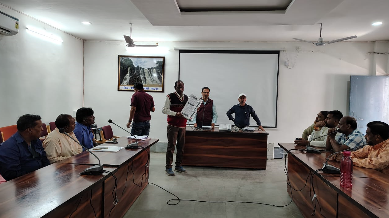 एमसीबी / कलेक्टर एवं जिला निर्वाचन अधिकारी के निर्देशानुसार आवेदन की प्रक्रिया पूर्ण कर विविधत सूचना पश्चात आयोग के निर्देशों के कार्यालय के सभा कक्ष मे निर्वाचन अभ्यर्थीयों तथा निर्वाचन अभिकर्ता की बैठक रिटर्निग ऑफिस नगर पालिका परिषद मनेन्द्रगढ़ द्वारा आहूत की गई थी। सर्वप्रथम बैठक में उपस्थित अभ्यर्थी एवं निर्वाचन अभिकर्ता को इलेक्ट्रॉनिक वोटिंग मशीन (ईवीएम) का प्रदर्शन किया गया और उपस्थित लोगों ईवीएम से संबंधित संदेहों का समाधान किया गया। इसके अलावा, वोटिंग डेमो भी किया गया, ताकि लोग ईवीएम का उपयोग करने में सहज महसूस करें। यह बैठक निर्वाचन प्रक्रिया में पारदर्शिता और विश्वास को बढ़ावा देने के लिए आयोजित की गई थी।