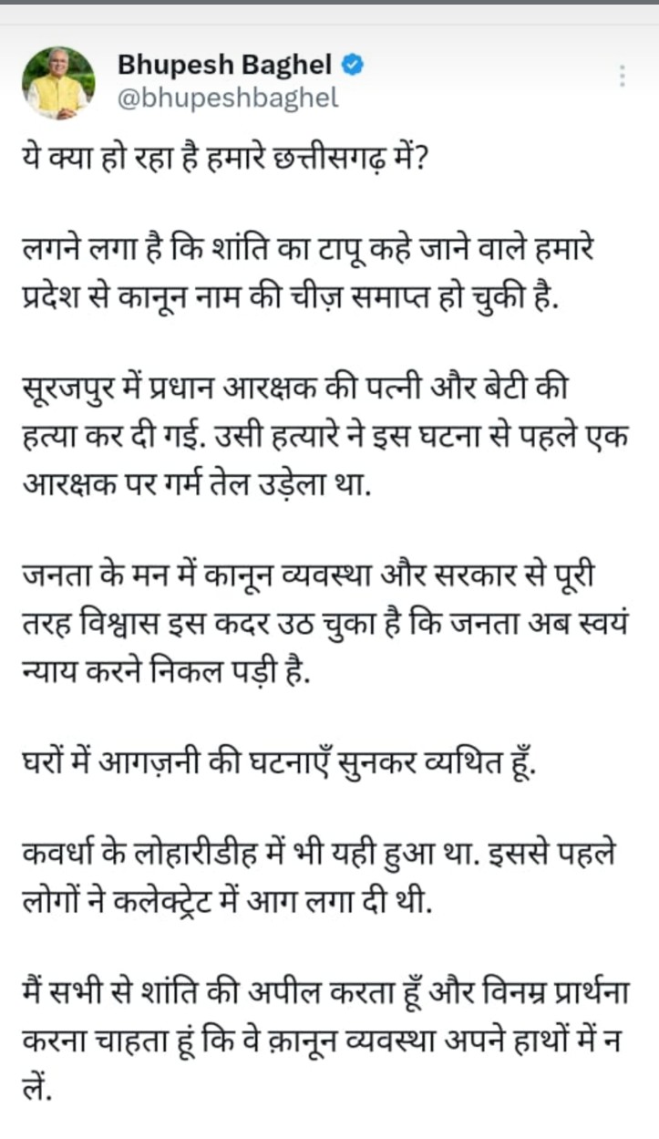 सूरजपुर घटना पर पूर्व मुख्यमंत्री भूपेश बघेल का बड़ा बयान