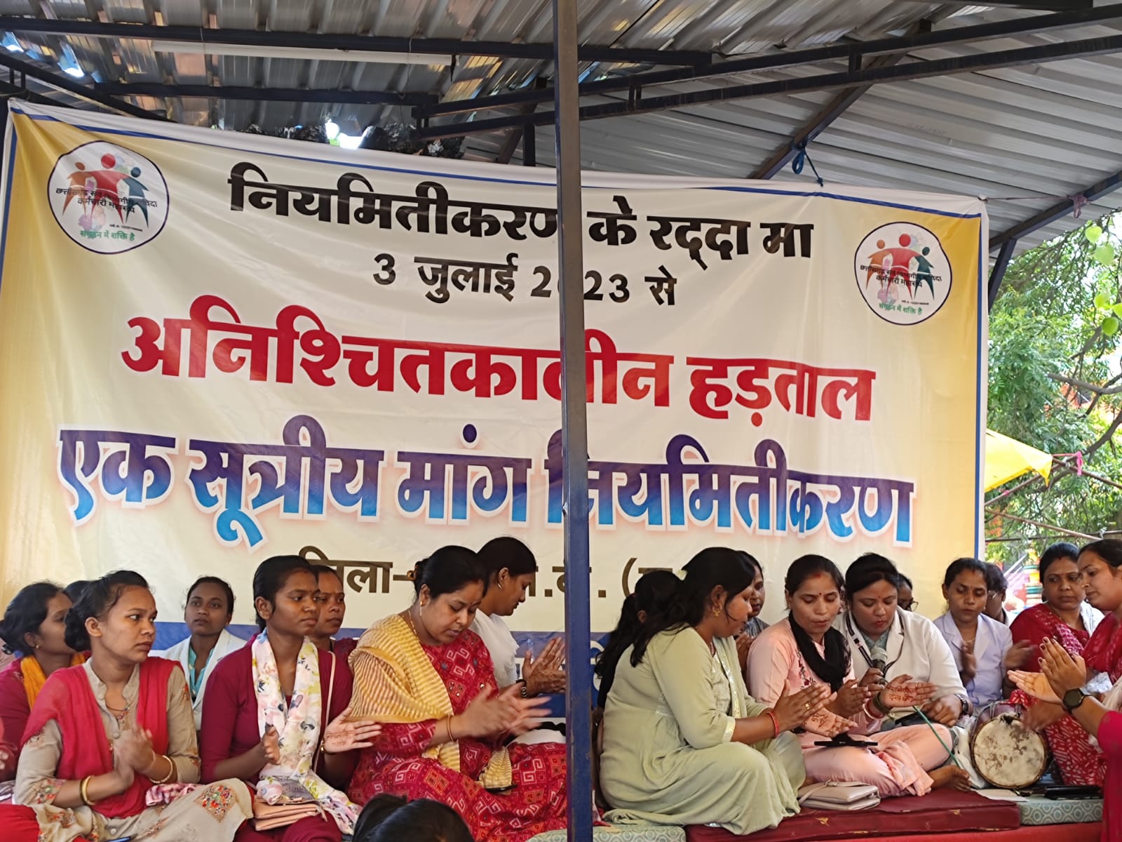 सर्व कर्मचारी संविदा संघ के बैनर तले राष्ट्रीय स्वास्थ्य मिशन एनएचएम में कार्यरत समस्त संविदा कर्मचारी दिनांक 03 जुलाई से अनिश्चित कालीन हड़ताल में चले गए हैं